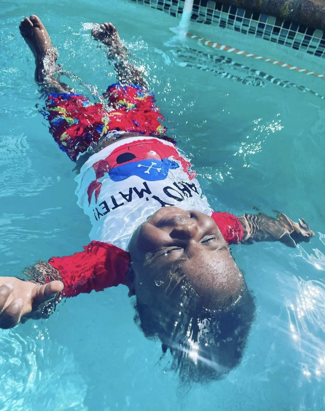 Since 86% of drownings occur when children are fully clothed, students practice their self-rescue skills during the final week of lessons in pjs and winter clothing tests (which can add 10 - 15 lbs.)